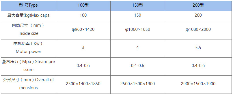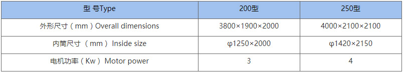二、氯洗机主要技术参数(Main Technical specifications)