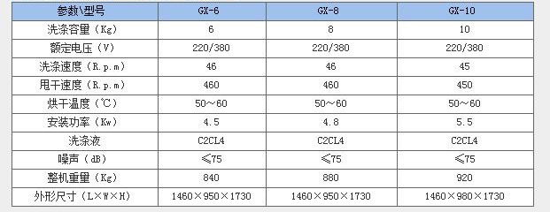 一、干洗机主要技术参数(Main Technical specifications)