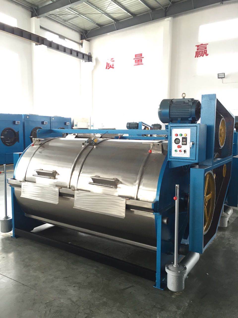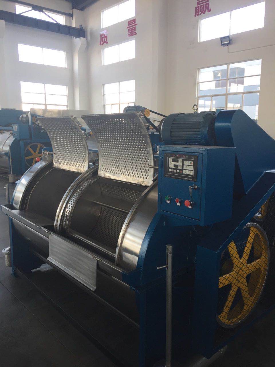 2、滤布清洗机运行安全可靠,内筒门盖上装有不锈钢安全锁紧机构,外筒门盖上设有电器互锁安全装置,若门未关好,本机将无法启动;若运行中门被打开,机器将立即停止运转,以确保人身