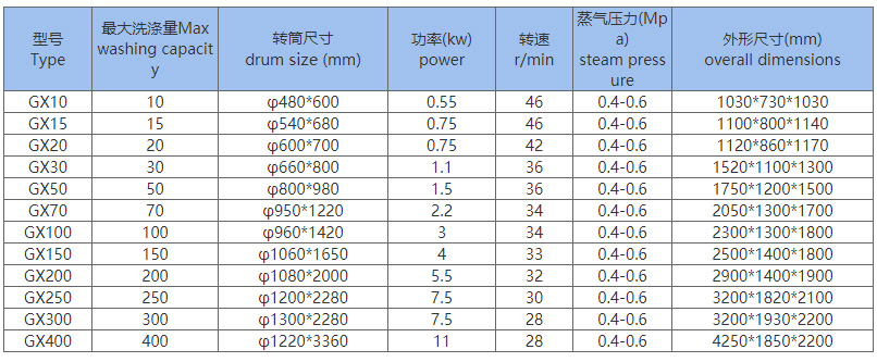 一、工业洗衣机主要技术参数(Main Technical specifications)