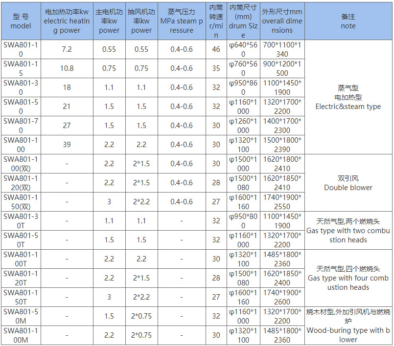 二、烘干机主要技术参数(Main Technical specifications)